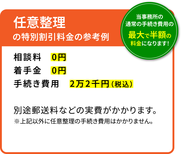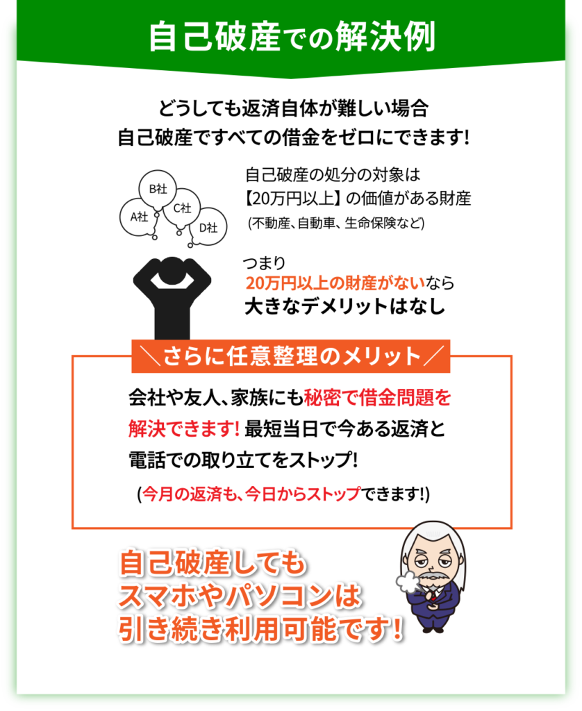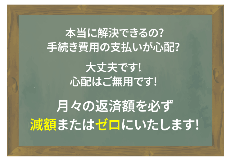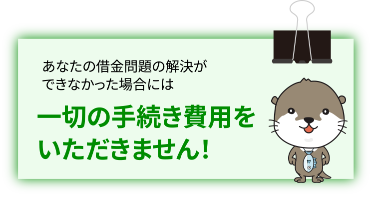 自己破産の手続きで借金をゼロにすることができないといった、あなたの借金問題の解決ができなかった場合には、一切の手続き費用をいただきません!