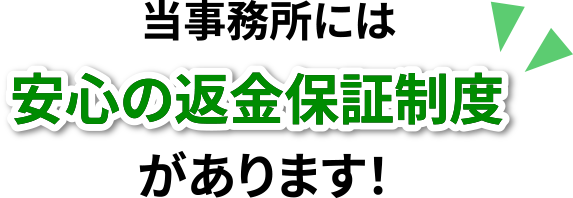 当事務所の依頼人に対する安心の返金保証制度は、当事務所の債務整理の仕事に対する自信の裏付けでもあります!